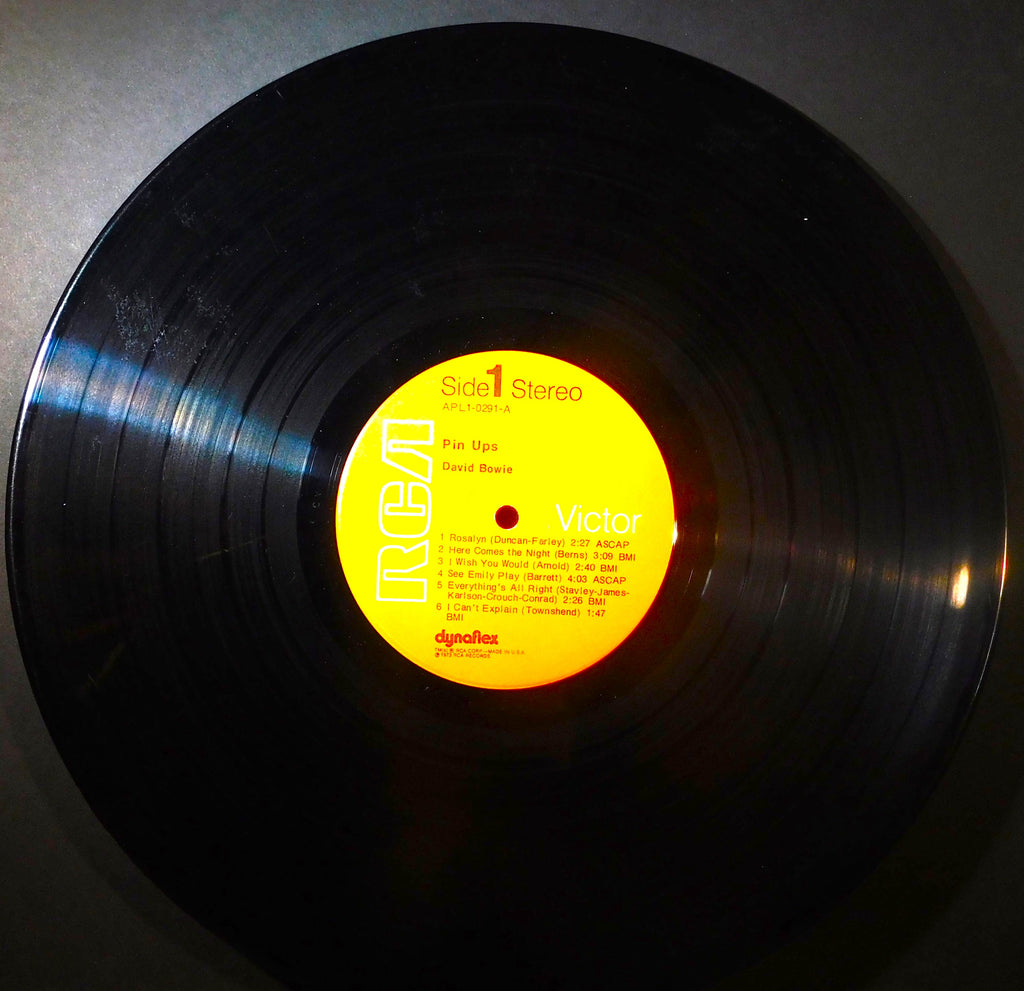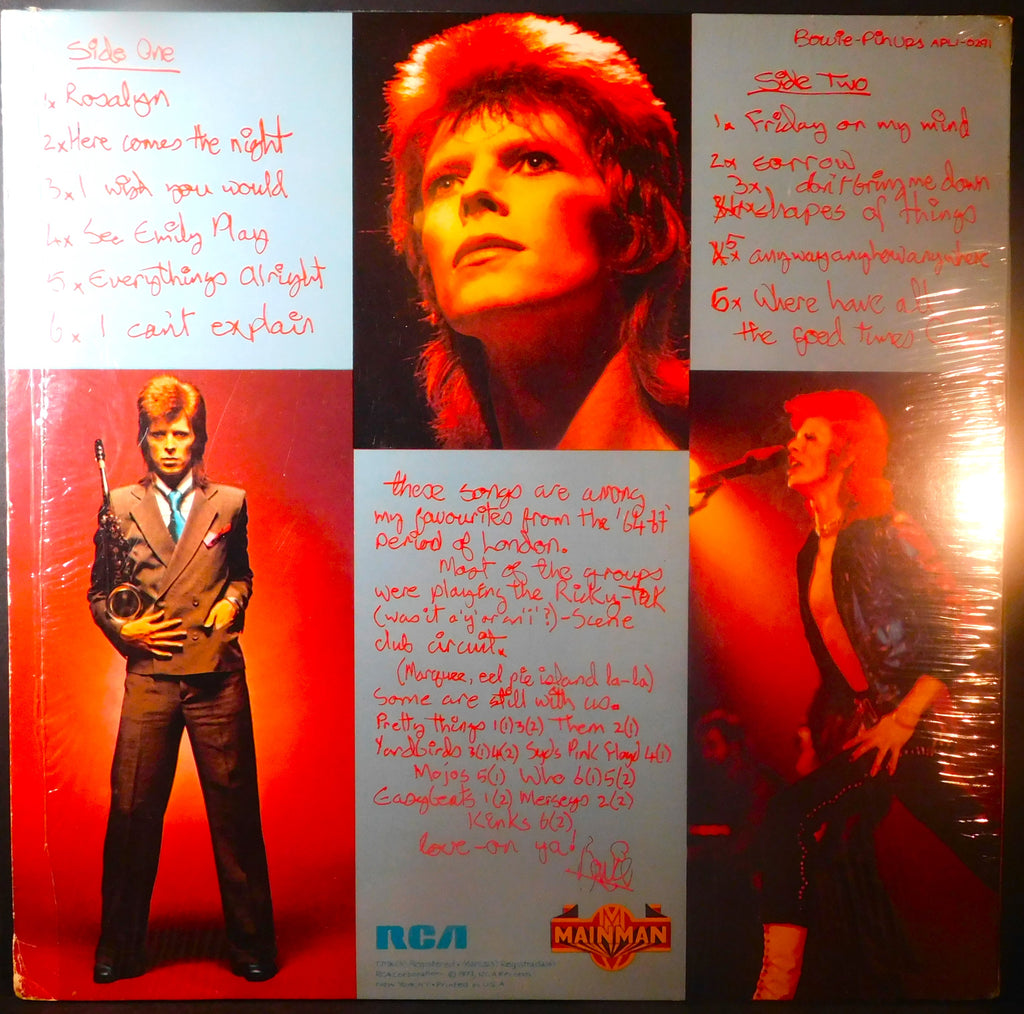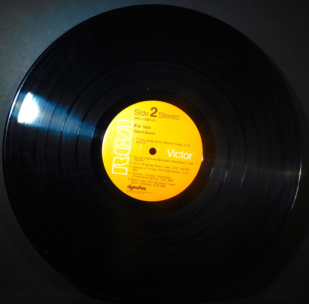 Twiggy !! Here is a very nice 1973 1st pressing of David Bowie's "PIN UPS" album (RCA APL1-0291) Twiggy & Bowie adorn this VG+ cover and the Vinyl a gently loved VG.